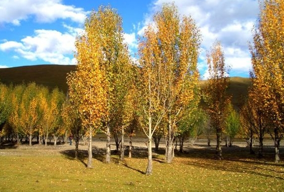 青杨性喜温凉湿润,比较耐寒。分布区年平均降水量300-600mm,在绝对最低温度-30 ℃的地方仍能开花结实。对土壤要求不严,适生于土壤深厚、肥沃、湿润、透气性良好的沙壤土、河滩冲积土上,也能在砂土、砾土及弱碱性的黄土、粟钙土上正常生长。在低湿地、黏重土壤、常年积水地生长不良,甚至死亡。在盐碱含量大的土壤上不能生长。根系发达,垂直分布在地表至0.7m 处,水平分布范围一般为3-4 m,因而具有一定的抗旱能力。生长快,萌蘖性强。