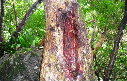 一般人都认为植物界的生物都是无血无肉的,即使你把它砍伤了,也不会觉得心存愧疚像是在杀害一条“生命”一样。树木的种类中,有的树木在损伤之后,流出的树液是一种无色透明的液体,有的树木则流的是白色乳液。但是你恐怕不知道,有的树木在损伤后竟然能流出“血”来,你见过吗?